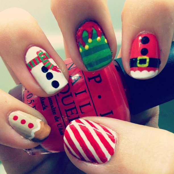 Paint your nails with reds, whites, silvers and a lot of greens. Make it with a lot of Christmas love.