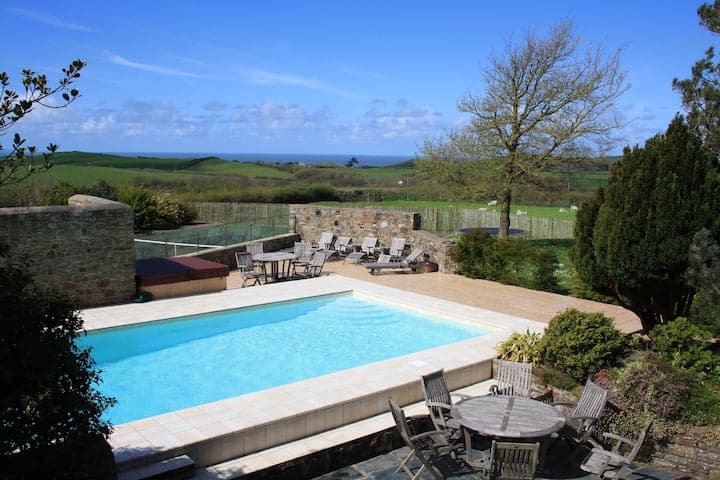 A pretty traditional Devon stone long-house with its own hot tub and shared swimming pool and tennis court.