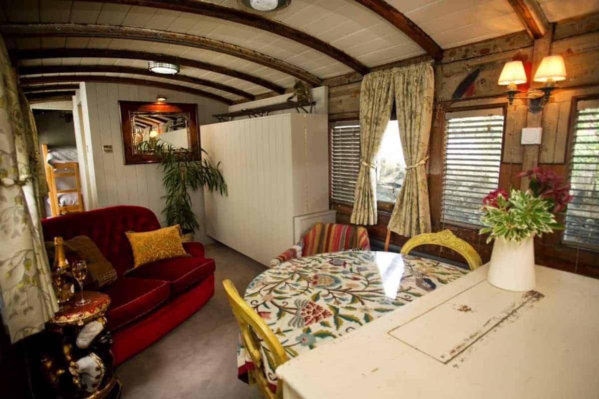 This lovingly restored Victorian railway carriage with star gazing clear roof above the bed makes a romantic retreat for two.